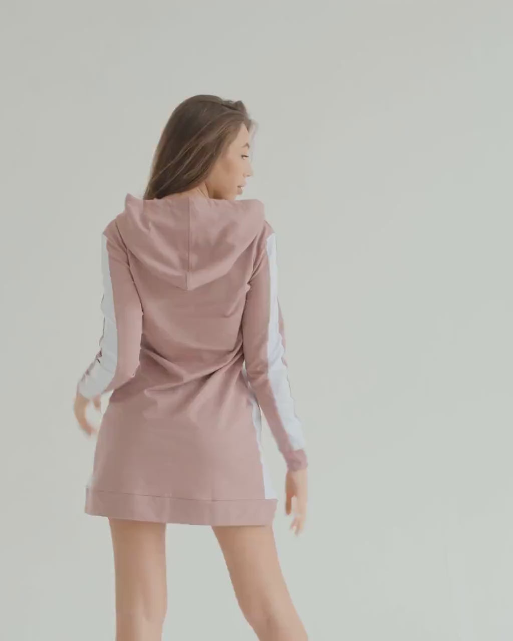 Highlights Designed by SweetJama Materials: Jersey, Cotton, elastan About this item SweetJama sports dress with a hood is a stylish dress that will allow you to feel freedom during walks, outdoor activities or sports events. If you like sports and at the same time want to feel freedom, then this dress will easily replace a women's sports suit. Design features of the model: free cut that emphasizes the figure, long sleeves; deep hood; pockets on the sides, slits on the hips, elongated back. The dress is made of soft, pleasant to the body, Turkish "Penye" knitwear, thanks to natural materials (95% cotton, 5% elastane), the body will breathe easily even during active movements, while it will easily warm you in the cool spring and summer in the evenings.